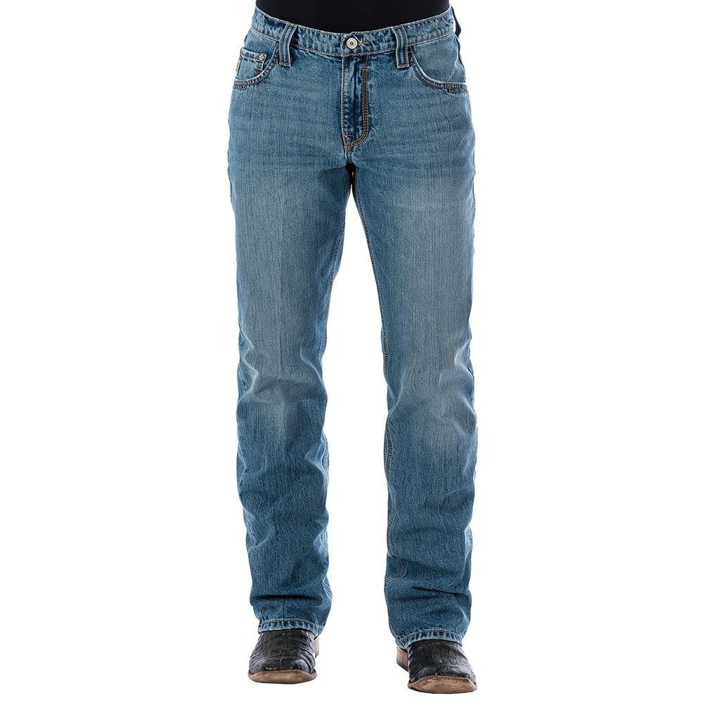 This summer’s Carter 2.0 jean debuts in CINCH Performance denim. Hand sanding reveals the dimension of the denim, while tacking and whiskers add to the style. Chestnut and cement dual-tone threads compost the double-line back pocket design.