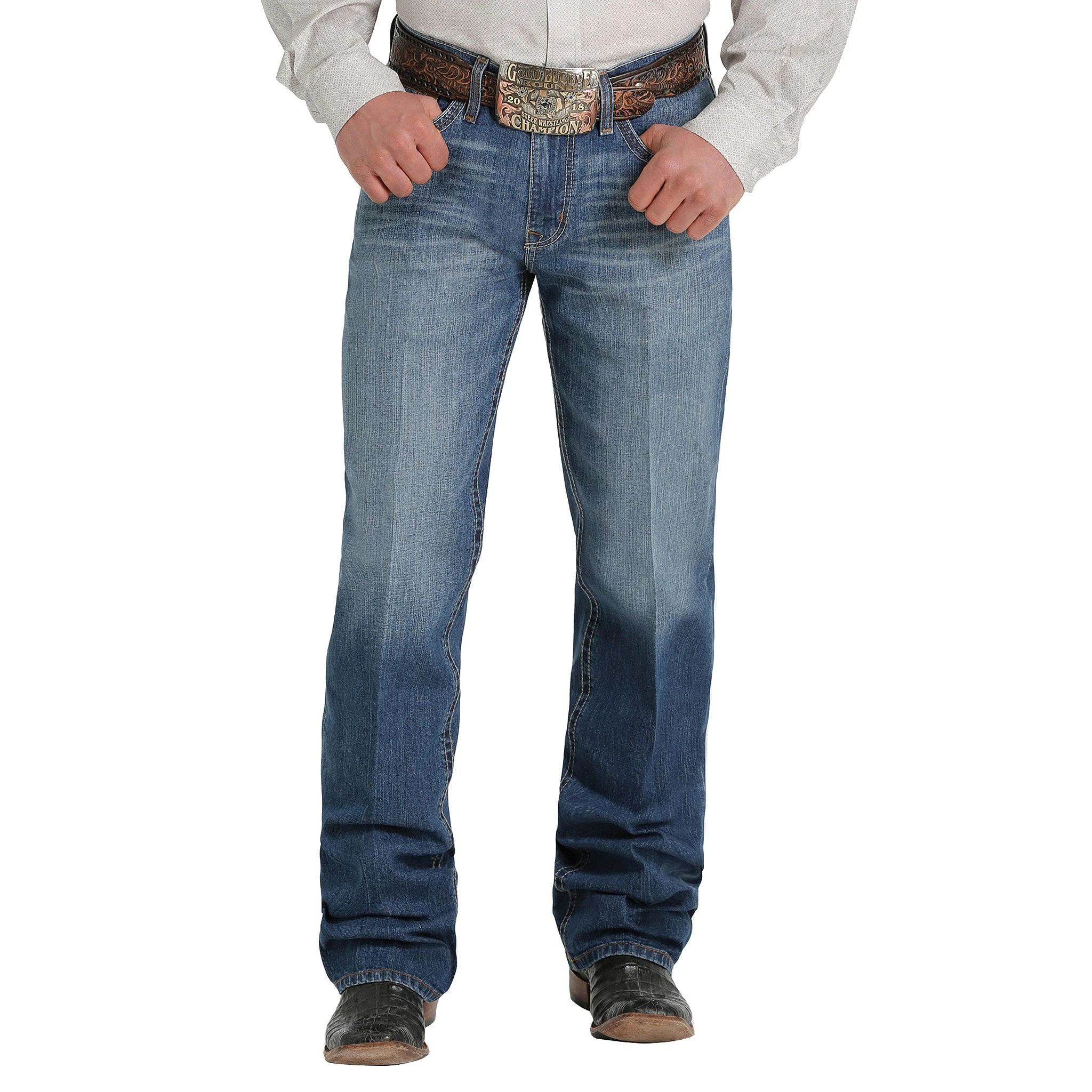 Need a classic denim jean that goes with everything? Look no further than the GRANT. Back pocket and triple needle yoke stitching in khaki and brown highlight the versatile medium stonewash, while hand sanding, whiskers and chevrons emphasize the denim’s unique character.
