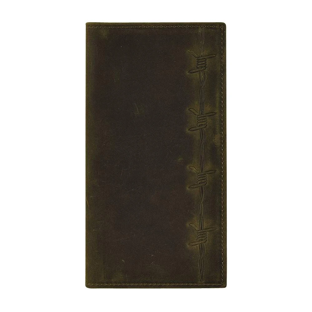 ย Men’s Justin barbed wire rodeo wallet! Bi-fold leather that holds credit cards and ID. Fits most pockets.