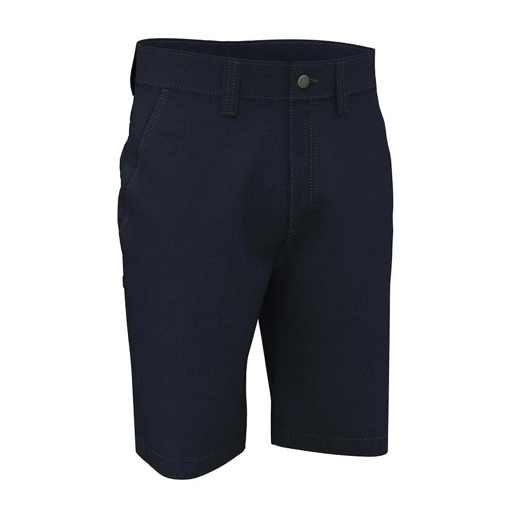 Start your summer wardrobe with these comfortable shorts for all of your summer activities! 98 percent cotton, 2 percent spandex, 7.1oz, 36565NV| The height of the front rise varies by the waist size. For example a size 34 the rise is 11.25in up while others may go up to 15 7/8in. It increases ¼ inch for each size up. Also, the The inseam length for all waist sizes is 10 inches. Elevate the look of your summer wardrobe with this flat front chino style. These Wrangler Rugged Wear flat front chino shorts offer the warm-weather comfort you depend on while giving you a versatile, put together look you can wear for every occasion this season. The practical mens shorts are equipped with functional features you will appreciate, such as slash front pockets, inset back pockets, and a cell phone pocket at the back right to ensure your valuables stay secure.