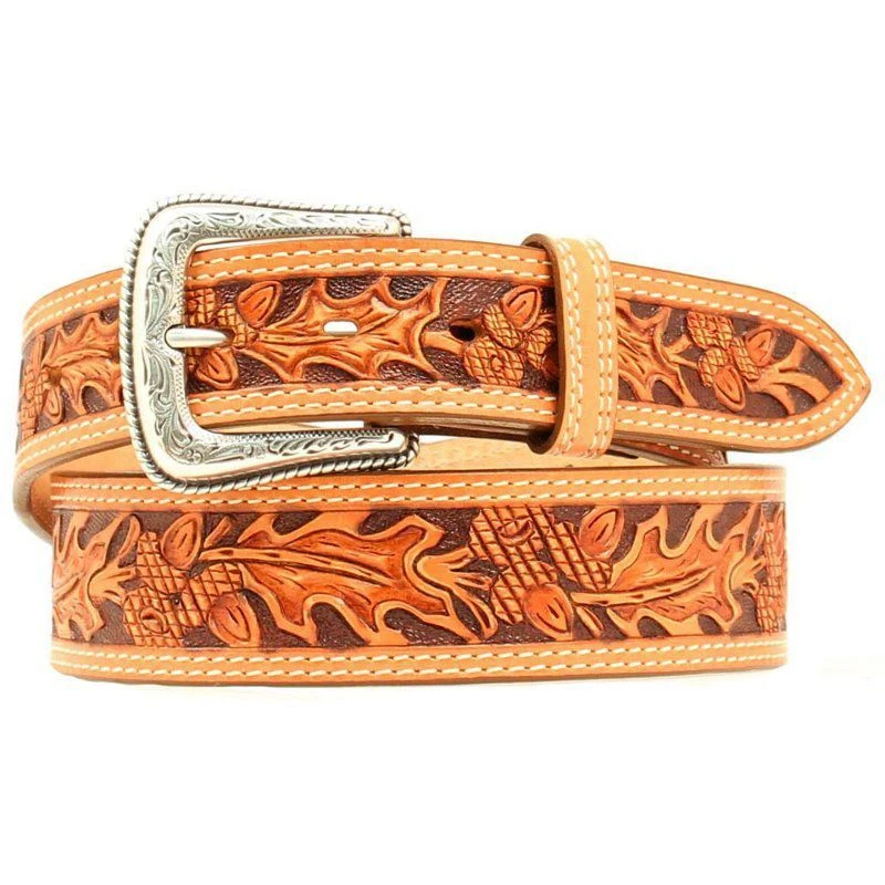 ย This Mens Natural Autumn Tooled 1 3/4in Tapered Belt features a leather keeper and silver engraved belt buckle. This is an M & F Western Products that is quality and design. Be stylish in your western wear by wearing this tooled belt with your favorite jeans. N2497048