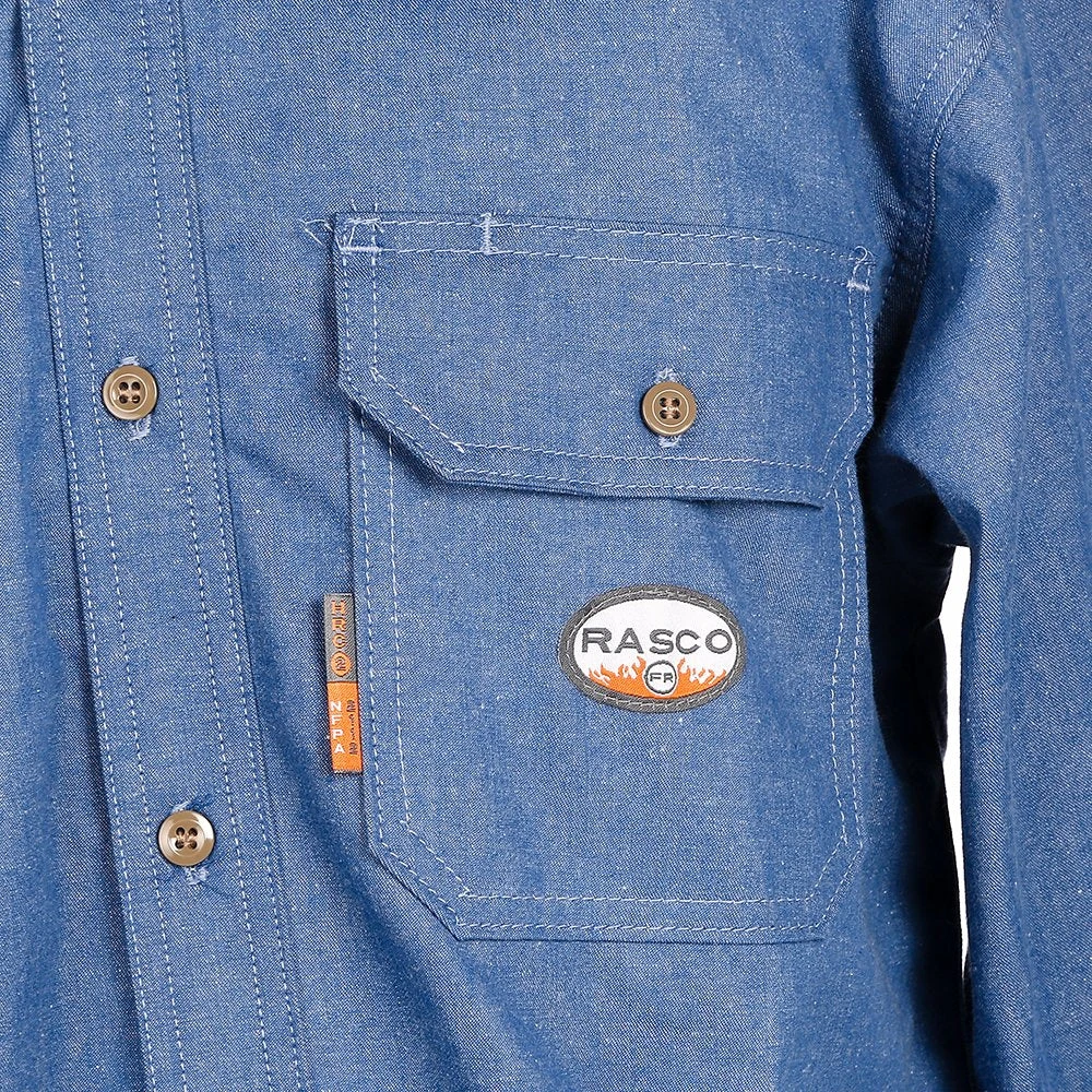 Carry your style to work in this FR rated chambray shirt from Rasco work wear.