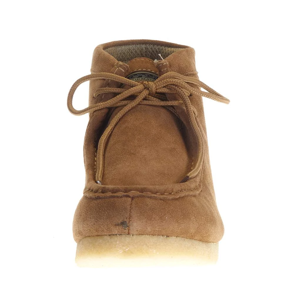 These performance boots are all about comfort with their 3/4 ankle height and removable insole with EVA cushion. Suede leather upper with fabric lining and a crepe gum sole.