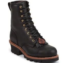 Chippewa Footwear Men’s Black Steel Toe Logger Lace Up Boot