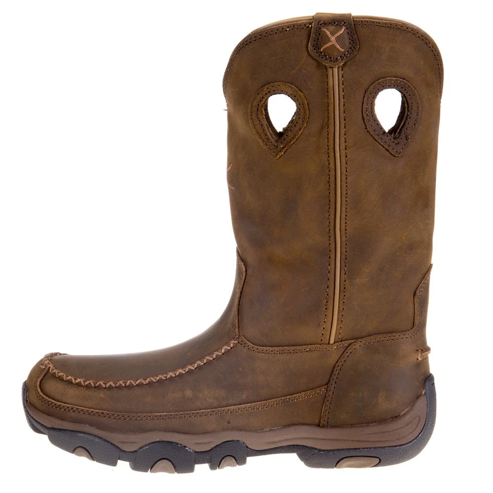 Men’s Cowboy work collection by Twisted X is exactly waht it says. Durable, heavy duty workboot, with a cowboy profile. The slab rubber outsole is extremely durable and slip resistant, while the Twisted X patented XSD insole provides stabiltiy and an excellent fit. The moisture-wicking, antibacterial and machine-washable removable footbed guarantees comfort for a long day on the job.